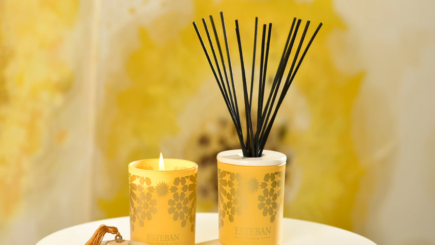 フランスのアトリエで、職人が一つ一つ手作業でつくるフランス製キャンドルは、ゆっくりと柔らかく香りが広がり、お部屋全体を香りで包み込みます。 香りと光を結びつけるキャンドルは、あたたかでゆったりとした雰囲気をもたらします。 ●100%植物性ワックス使用 ●100%ピュアコットン芯 ●リサイクル可能なガラスボトルとパッケージを採用 香りからインスピレーションを受けたデザインがあしらわれた装飾的なボトルは、灯りに照らされ美しく浮かび上がります。蓋は埃除けや、消火の際にお役立ていただけます。
